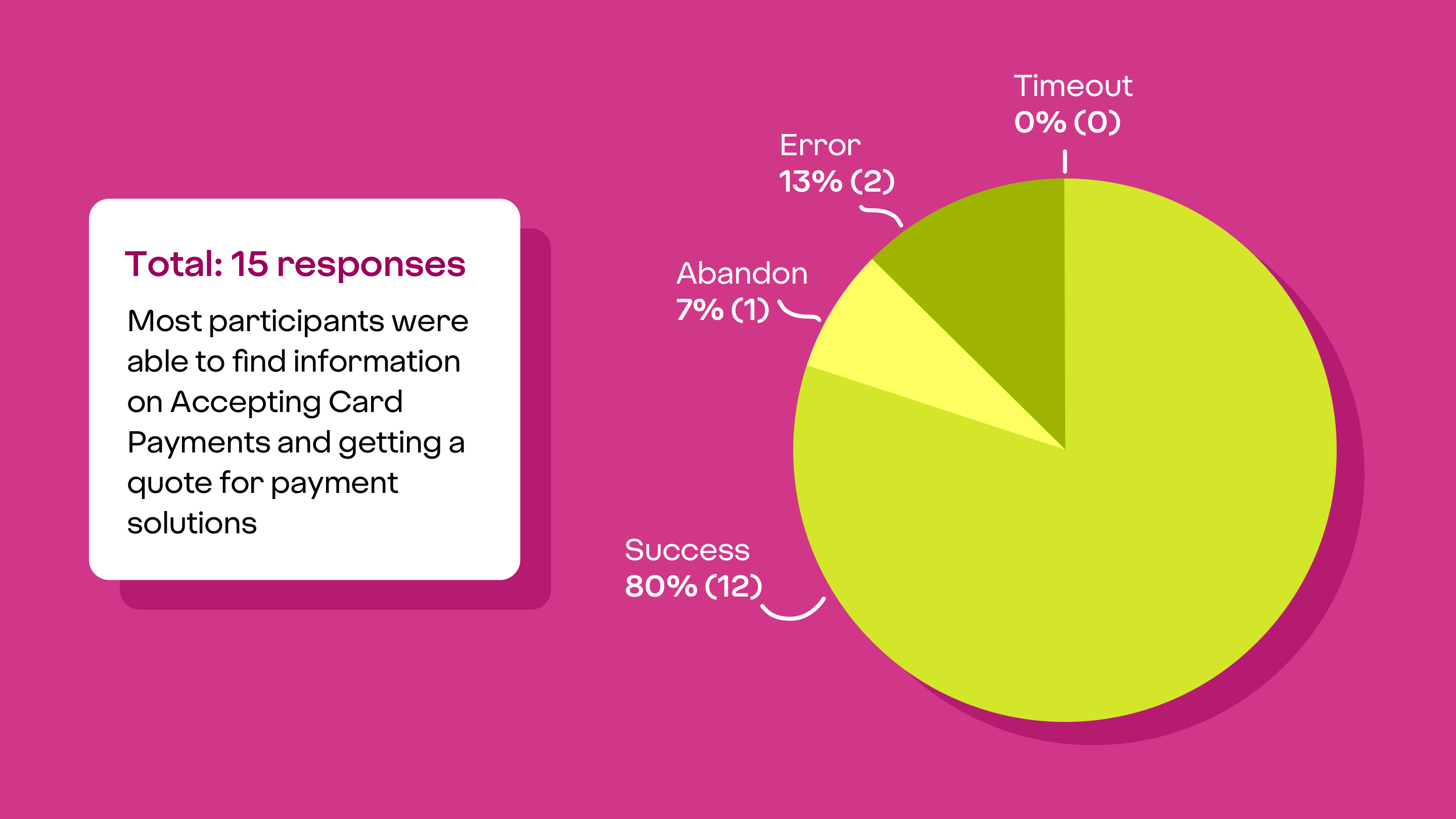 We needed to find out if adding a ‘Credit cards’ section would confuse people looking for card machines. Or if there was a section label that might work for both card payments and credit cards.